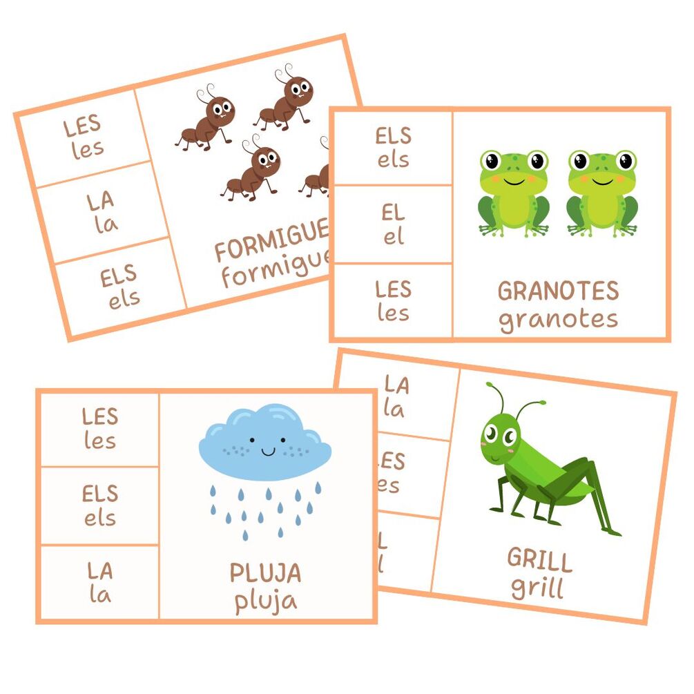 24 targetes amb dibuixos i 3 opcions d'articles.
